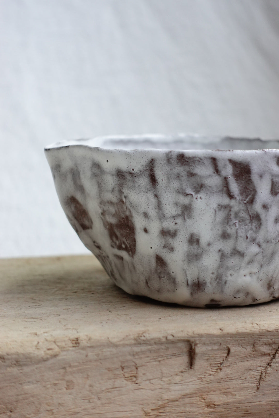 This matcha set is made with brown clay glazed in white.
